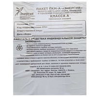 Пакет ПКМ-А-"Энергия" белого цвета для сбора, хранения и удаления медицинских отходов класса А (неопасные отходы), размер 330*300, плотность 9 мкм., в упаковке 100 шт, Россия (ООО "Энергия")