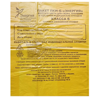 Пакет ПКМ-Б-"Энергия" желтого цвета для сбора, хранения и удаления медицинских отходов класса Б (опасные, рискованные отходы) с прямым дном, размер 800*900, плотность 12 мкм., в упаковке 50 шт, Россия (ООО "Энергия")