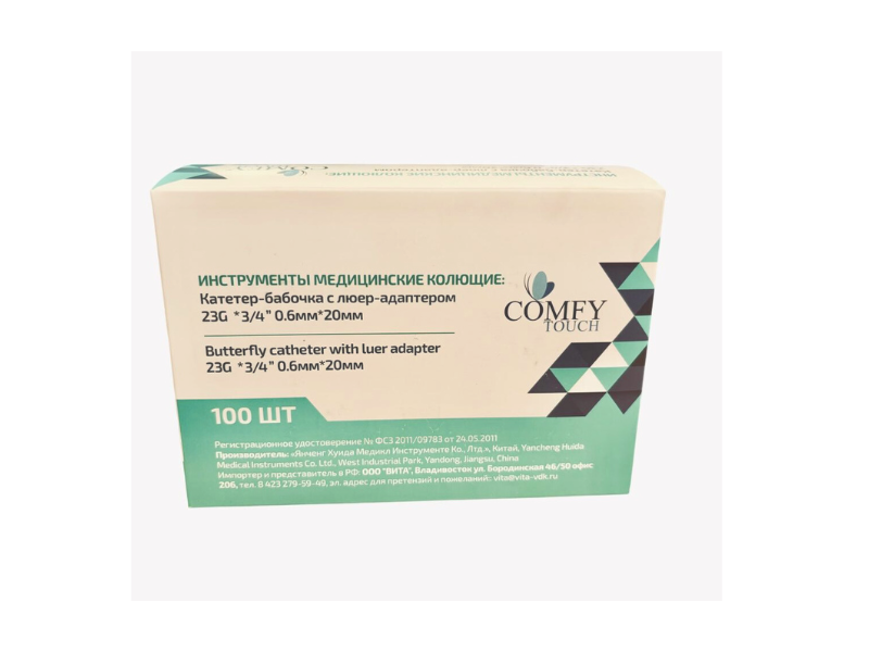 Катетер-бабочка 23G*3/4" (0,6*20 мм) ТМ "Comfy Touch" с люер-адаптером, длина 180 мм, 100 шт/упаковка, Китай ("Янченг Хуида Медикл Инструменте Ко., Лтд.") HBBN23G