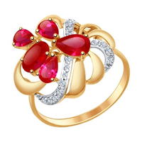 Кольцо из золота с красными корундами (синт.) и фианитами sokolov арт 053