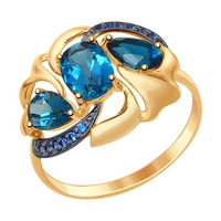 Кольцо из золота с синими топазами и синими фианитами sokolov арт 073