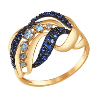 Кольцо из золота с голубыми и синими фианитами sokolov арт 048