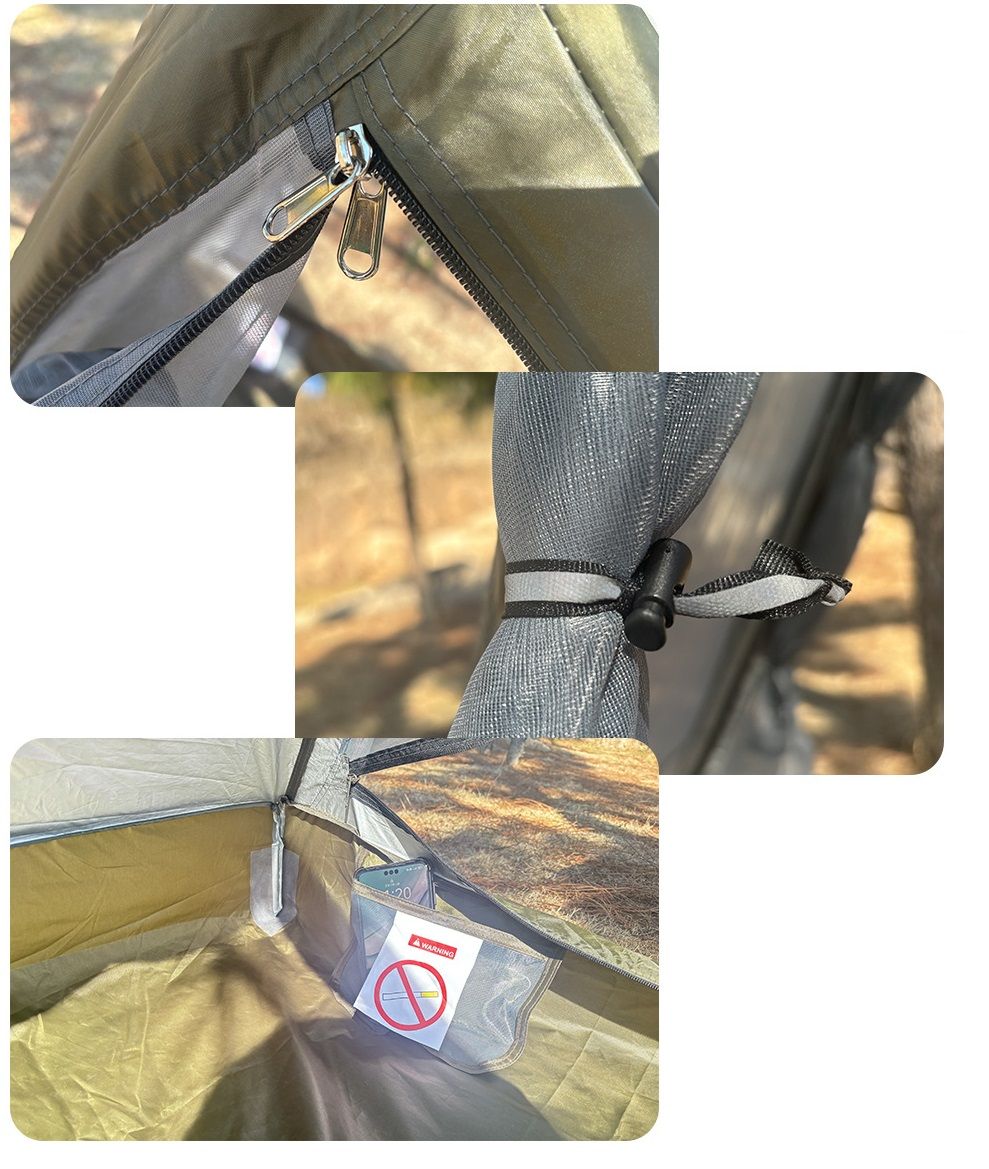 Обратите внимание в комплект не идет тент от дождя и стойки, стойки заменяют подручные средства, например трекинговые палки, или деревья.