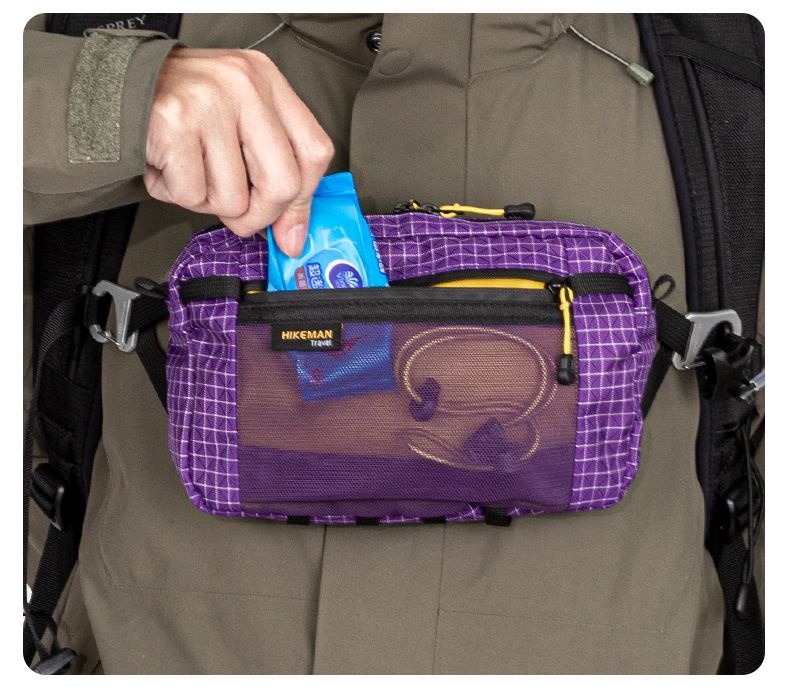 Часто у рюкзаков для активного отдыха не хватает карманов или небольших отделов для быстрого доступа к важной мелочи, для решения этой проблемы предлагаем органайзер HIKEMAN, данную сумку можно прикрепить на рюкзак с сзади, или спереди на лямки, также с помощи можно закрепить на поясные ремни рюкзака. У органайзера имеется наружный сетчатый карман, и основной отсек, также имеются множество лямок для крепления фонарика, очков и другой мелочи.