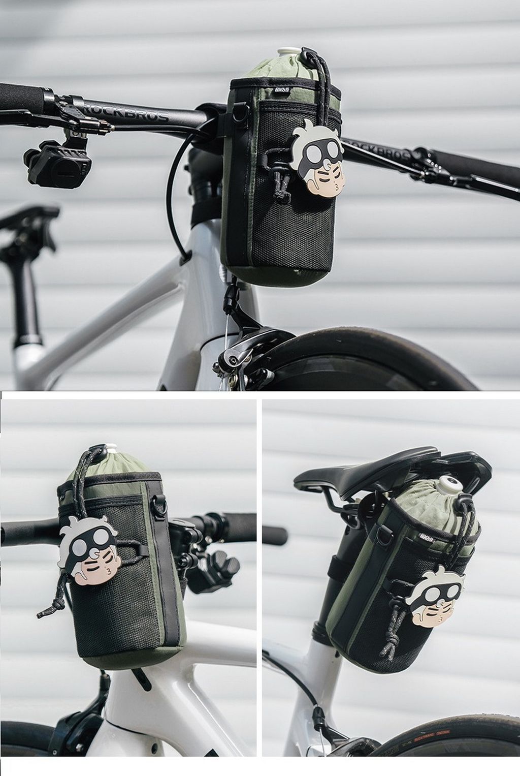 На руль, на вынос, под раму, под седло. Сумка имеет цилиндрическую форму и подходит для хранения бутылки с водой, но можно положить в нее что угодно, как же с баку имеется тянущейся карман, в него можно положить телефон или любую мелочь. Шнурок для ношения на плече.