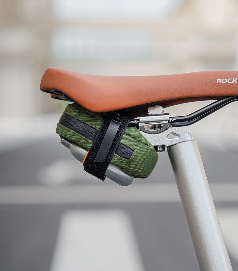 Минималистичная сумка под седло, можно взять самое необходимое. Водонепроницаемый корпус и молния. Внешний петли для баллонов CO2