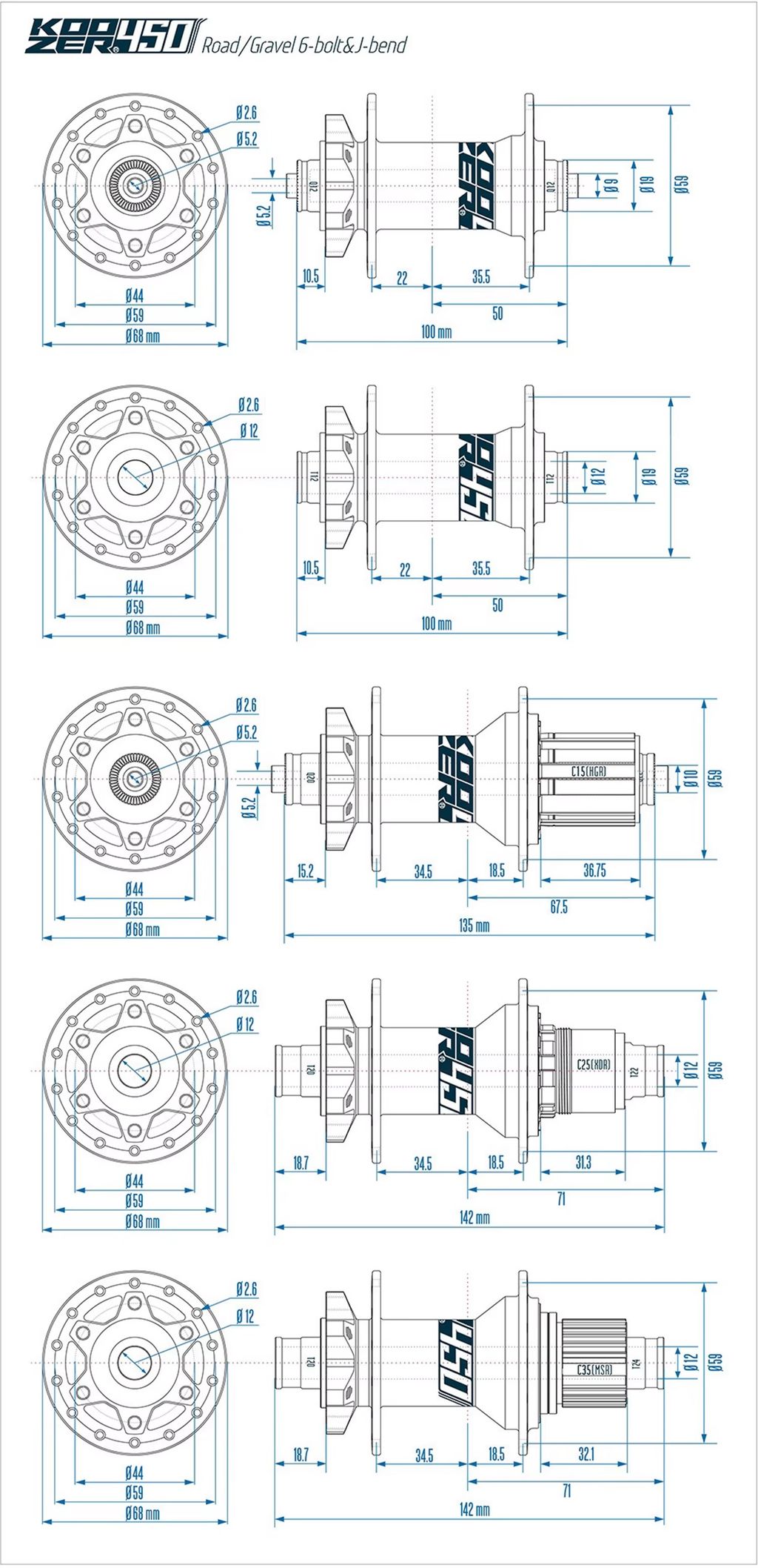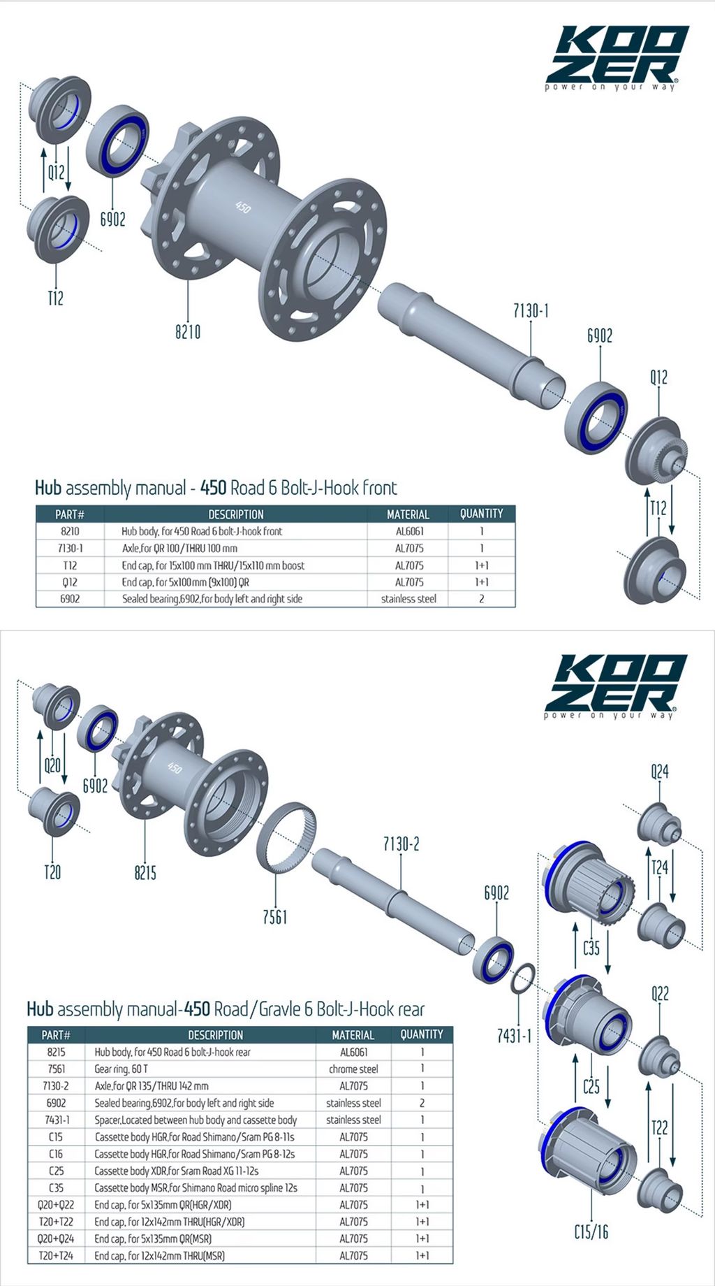 Передняя втулка KOOZER 450. 100*9QR. 28H