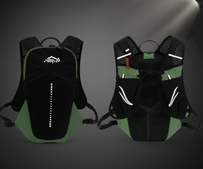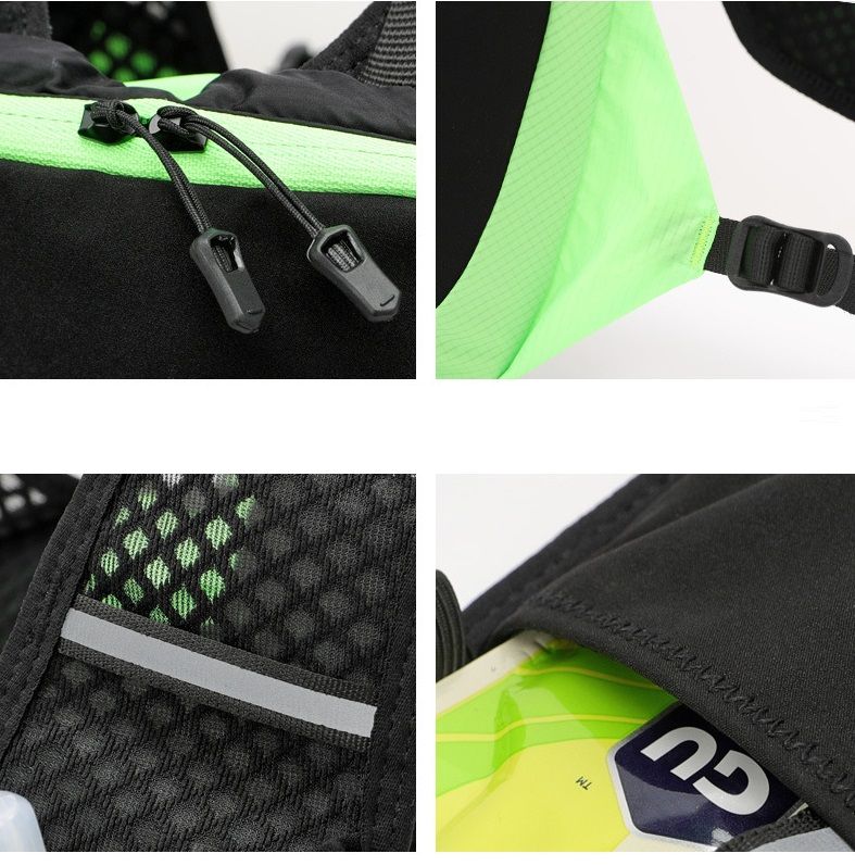 На рюкзак нанесены свето-отражающие элементы, что сделает безопаснее ваши вечерние пробежки Карман на лямках Карман на спине Помещается гидратор 1.5 л и 2 бут...