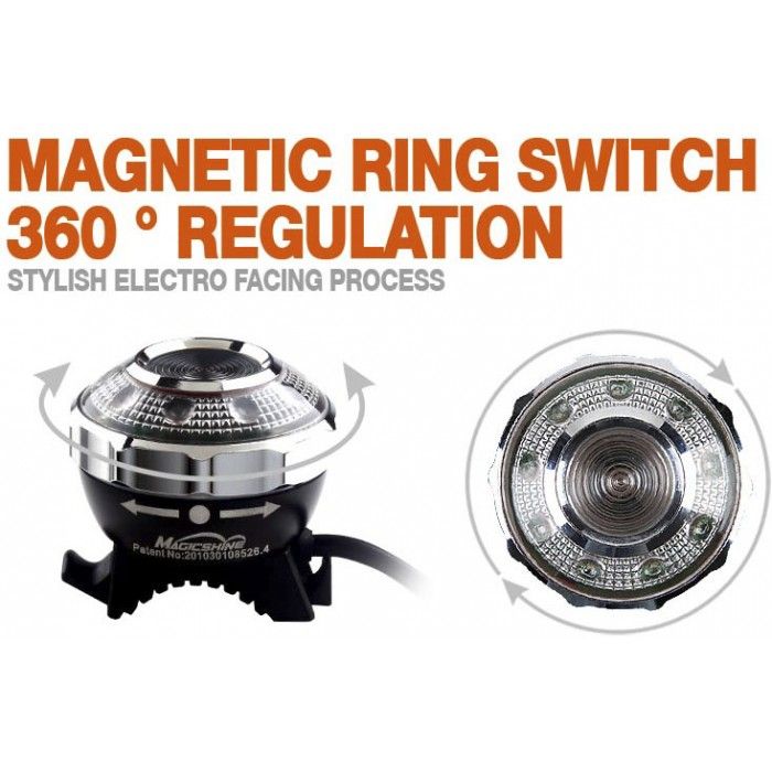 Корпус. Велофара Magicshine MJ-818 изготовлена из алюминиевого сплава высокой прочности. Передняя часть полирована, а задняя анодирована в черный цвет. Стекло имеет высокую степень светопропускания и хорошо защищено от возможных царапин. Корпус водонепроницаем и изготовлен по стандарту IPX4. Это позволит кататься при любой погоде.