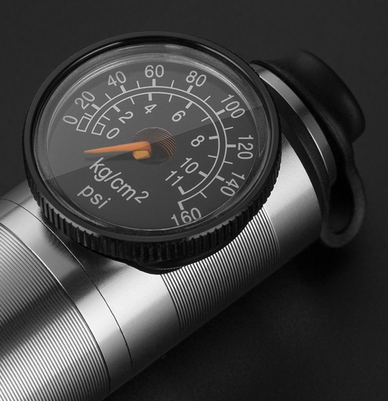 - Манометр Выдвижной шланг Кнопка спуска воздуха Ниппель Presta и Schrader Максимальное давление 160 psi