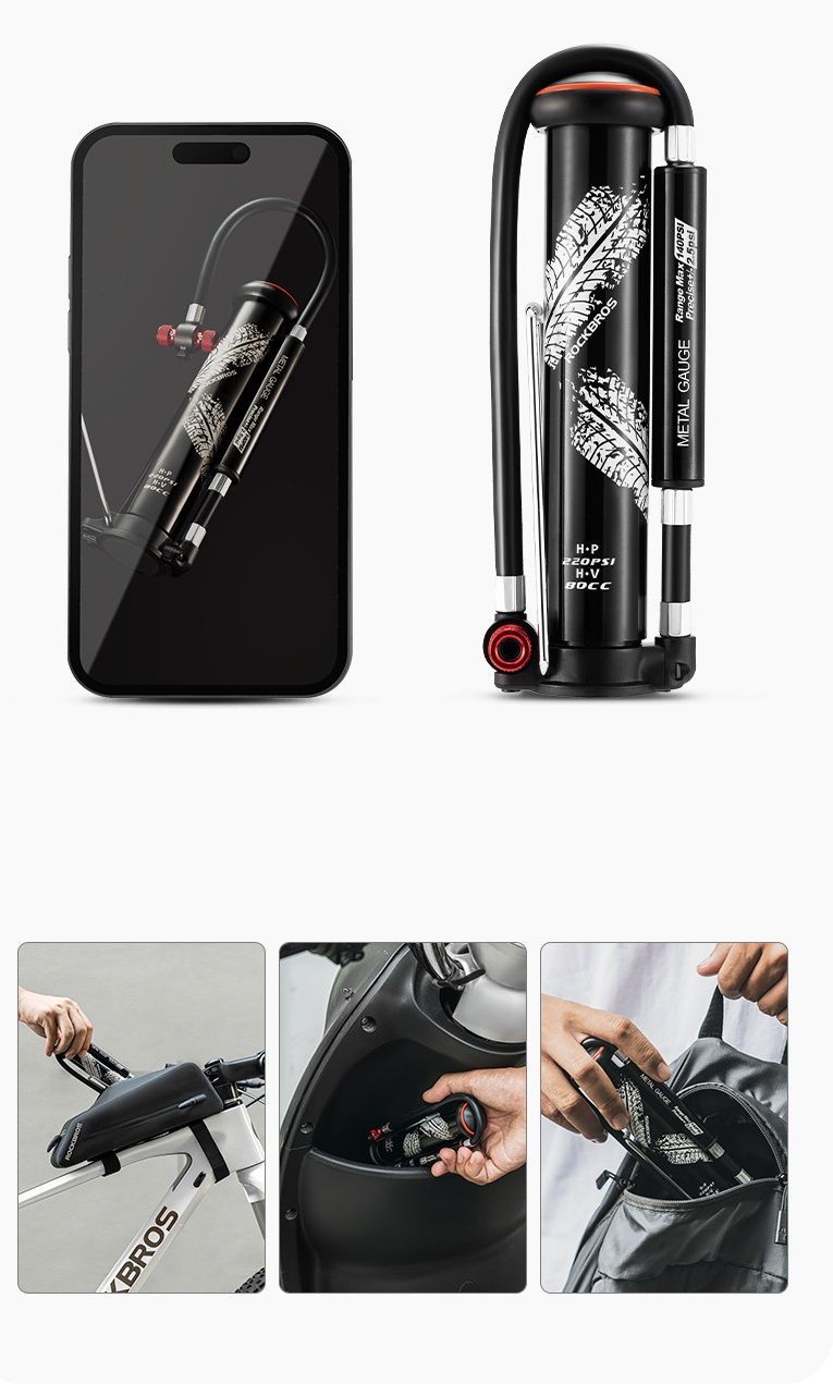 - Манометр Выдвижной шланг Кнопка спуска воздуха Ниппель Presta и Schrader Максимальное давление 220 psi Размер 17*4 см