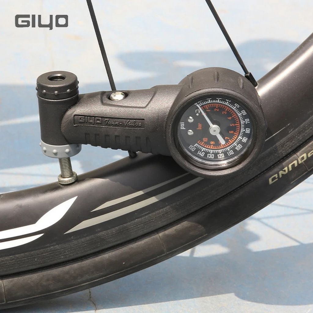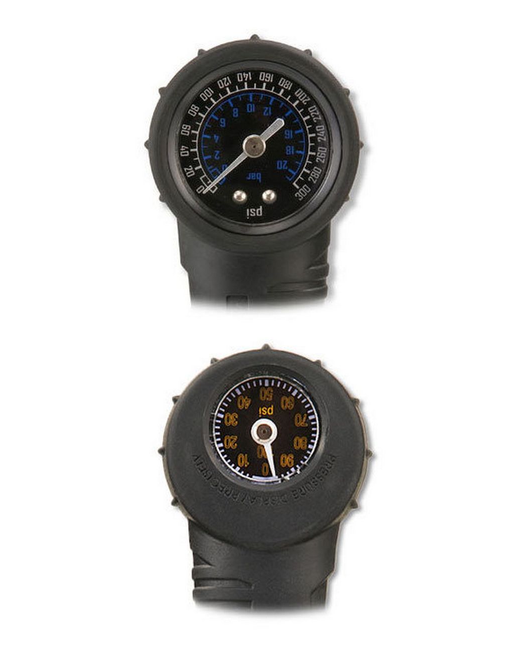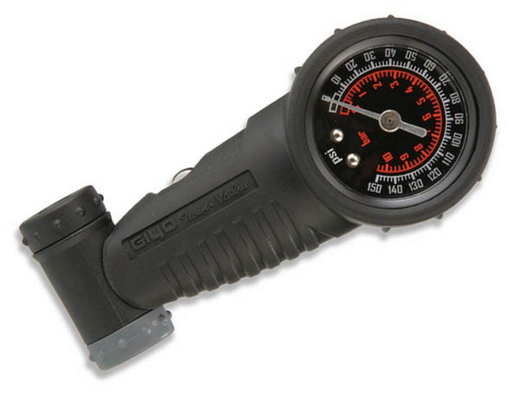 Манометр Giyo GG-06, корпус из прочного нейлона, под любые вентили, клапан сброса давления для точной настройки, максимальное давление 11 атмосфер (150 PSI), под любые вентили, так же манометр имеет 2 окна с обеих сторон.