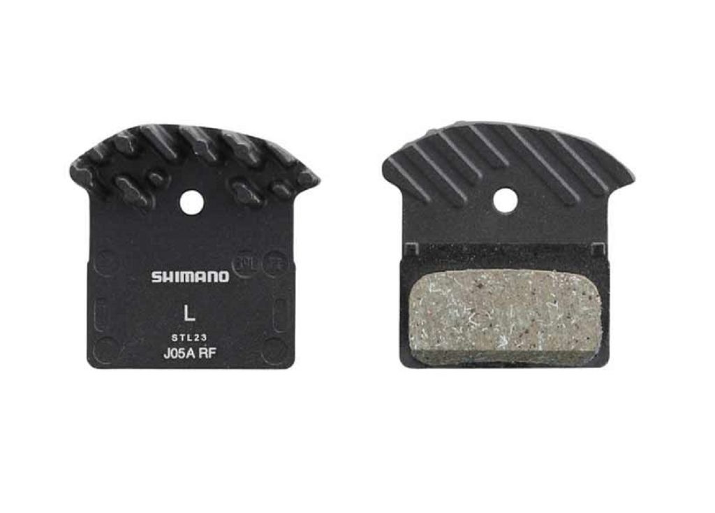 Тормозные колодки Shimano J05A-RF алюминий + органик + радиатор пара. Артикул Shimano: WO-EBPJ05ARFA. Упаковка OEM - пластиковый пакетик. Совместимые модели: BR-M9000, BR-M9020, BR-M987, BR-M985, BR-M8100, BR-M8000, BR-M785, BR-M7100, BR-M7000, BR-M675, BR-M666, BR-M6100, BR-M6000, BR-M615, BR-S700, BR-RS785, BR-R785