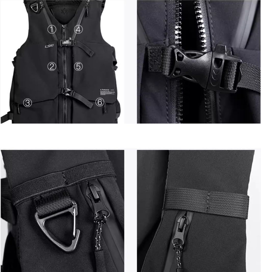 - Спереди имеется 6 карманов на молнии