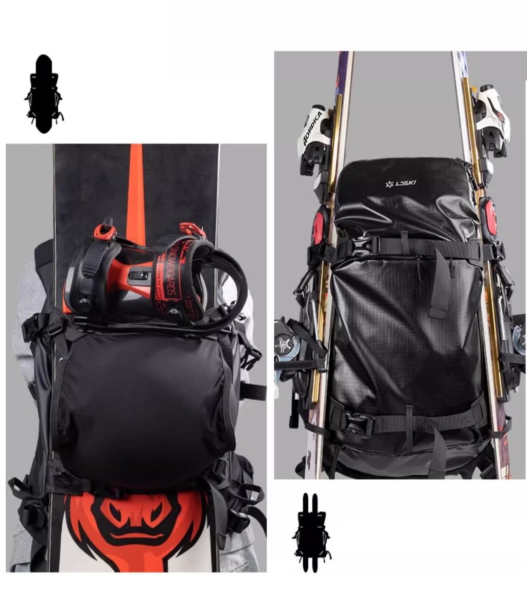 - Возможность крепить сноуборд или лыжи