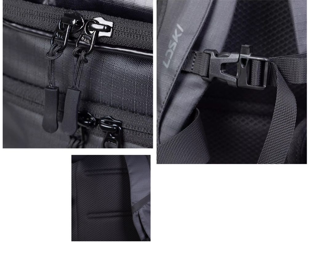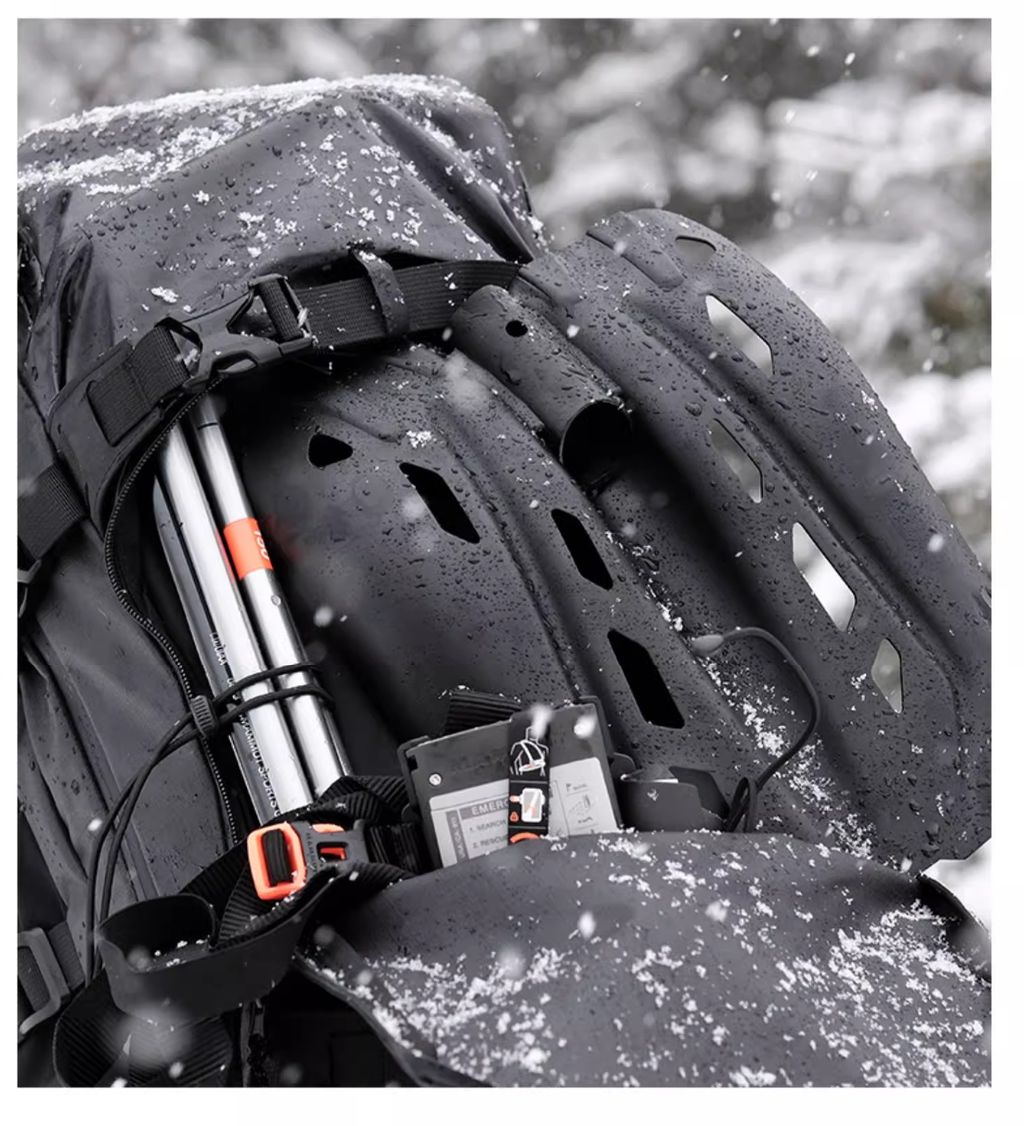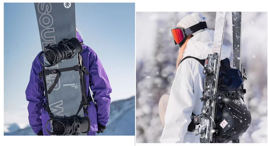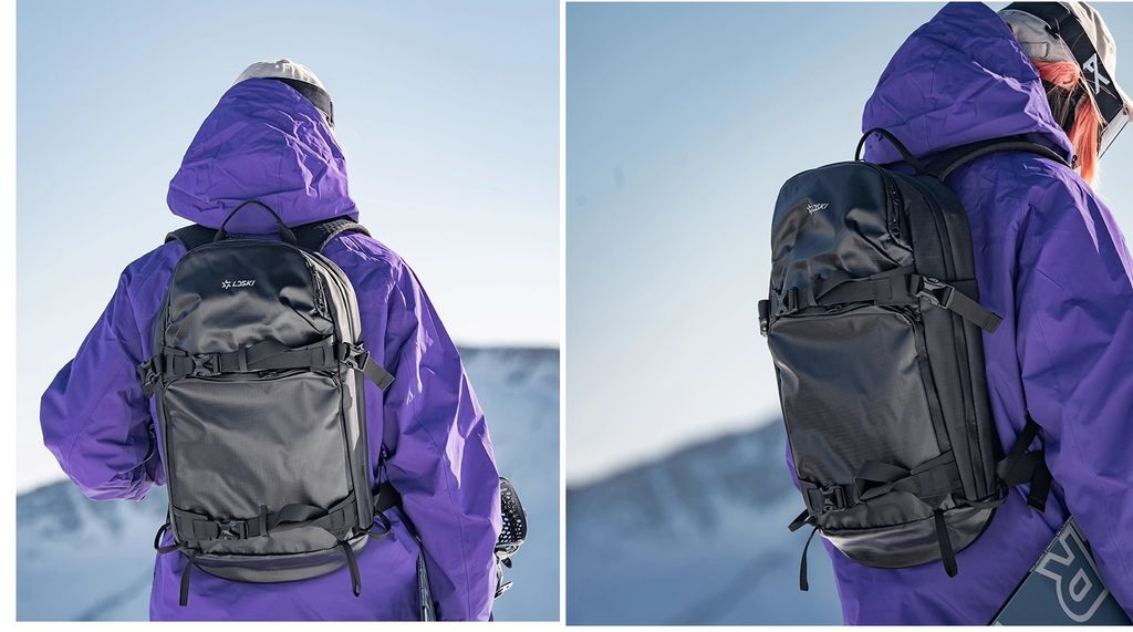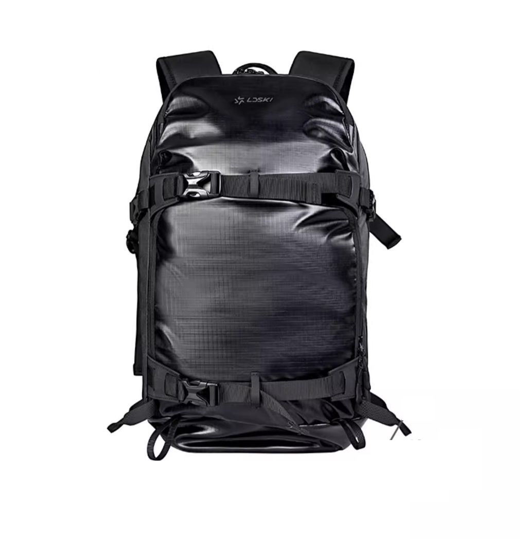 Рюкзака для катания на лыжах или сноуборде. Внешняя часть изготовлена из износостойкого водонепроницаемого материала. Качественная пластиковая морозостойкая фурнитура и молнии YKK.