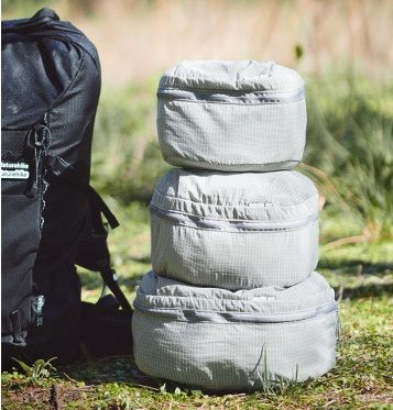 Ультралегкие сумки для путешествий и походов, сумки трех размеров имеют основное отделение и дополнительный карман, благодаря данным сумкам вы может организовать пространство в рюкзаке или чемодане. У каждой сумке имеется петля, благодаря чему ее можно повесить. Сумки имеют малый транспортировочный вес о объем, при необходимости их можно сложить и убрать, много места не займут.