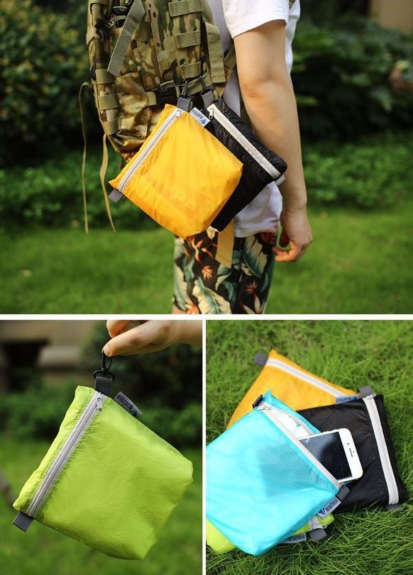 Небольшая сумочка размером 19*18 см и весом 13, предназначена для путешествий и туризма, ткань 15D имеет хорошую влагозащиту, что позволит сохранить вещи сухими, а благодаря крючку, сумочку можно закрепить снаружи рюкзака или внутри.