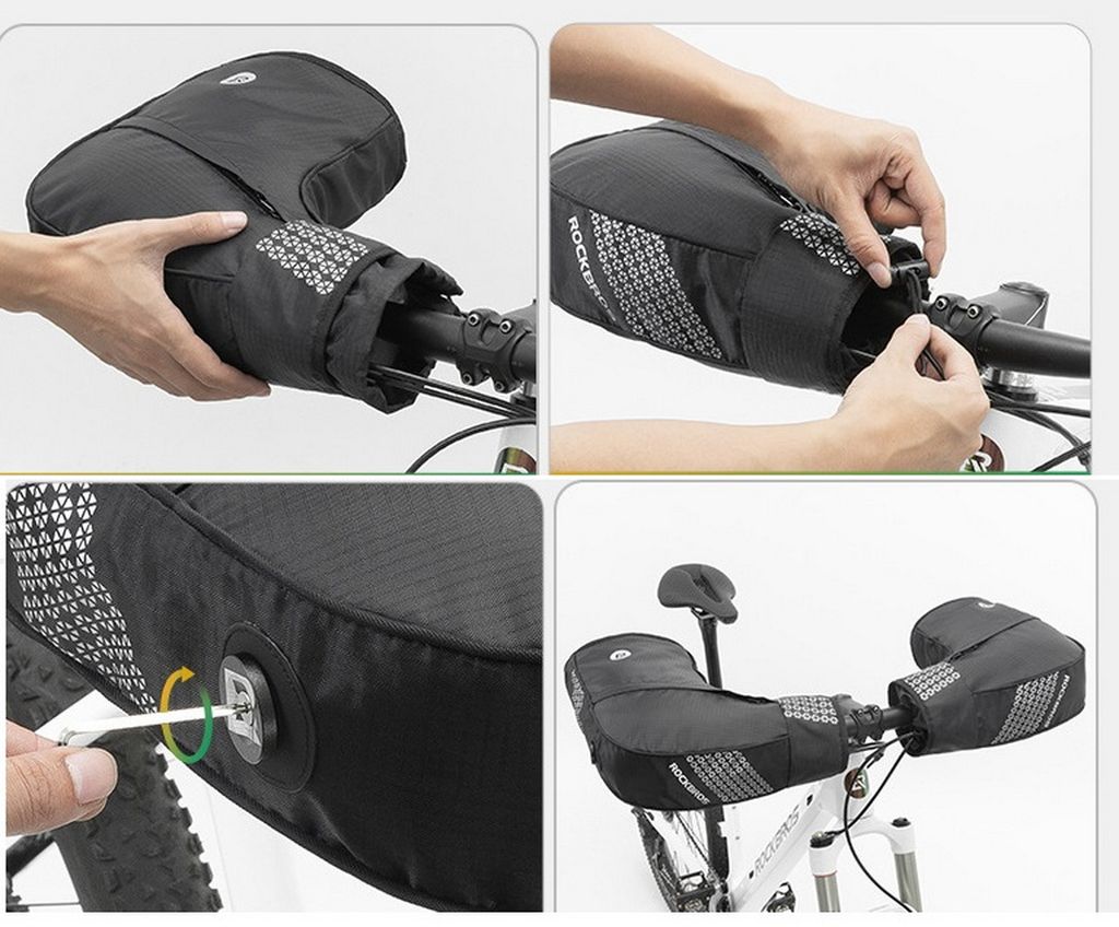 Грипсовицы Rockbros D80 Один из самых надежных способов защитить руки велосипедиста от холода зимой. Особенность: Возможность возможность дополнительной фиксации с помощью баренды (заглушки) идущих в комплекте
