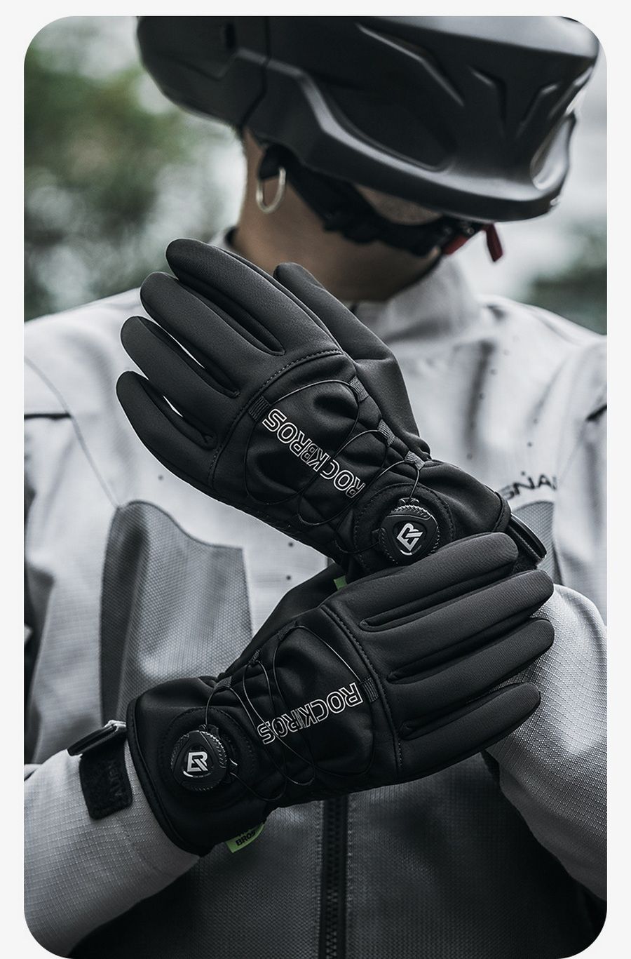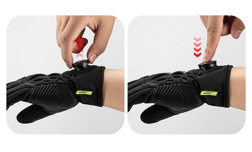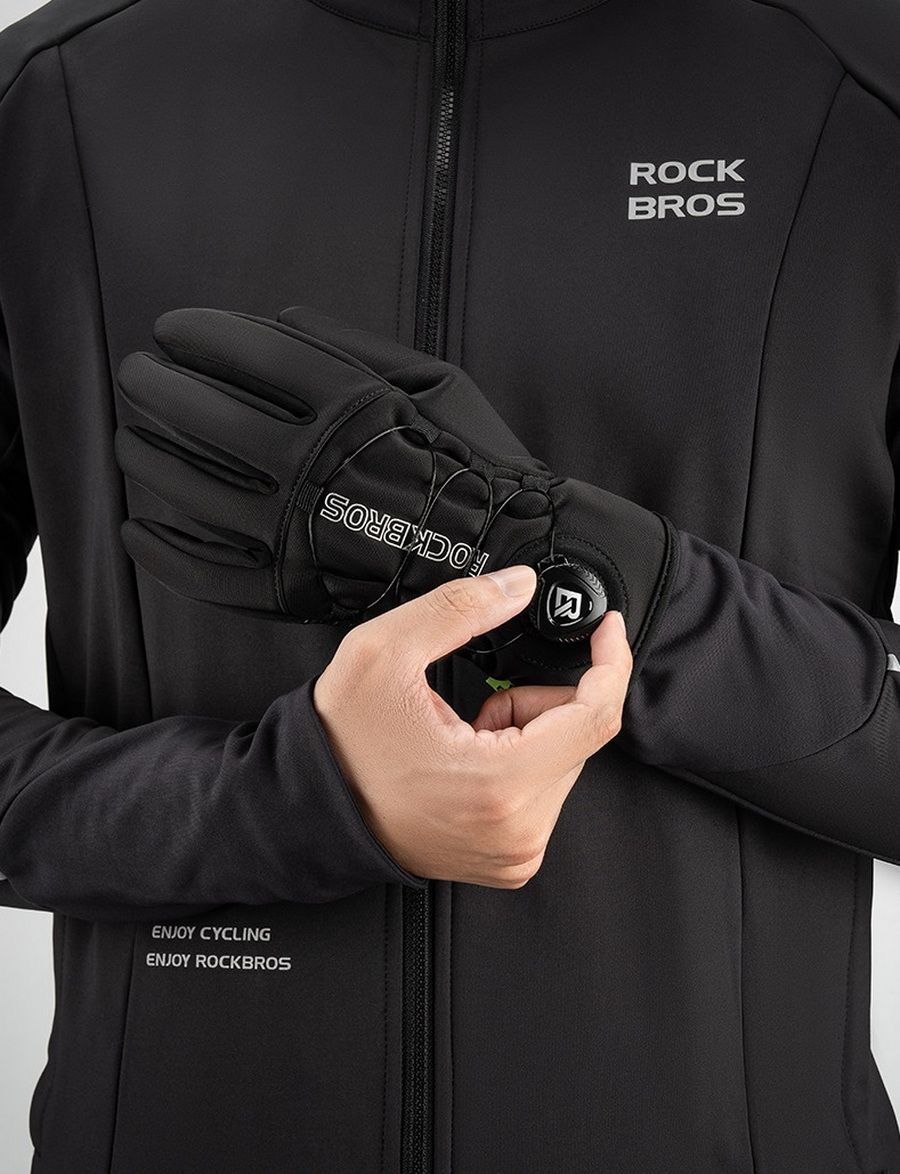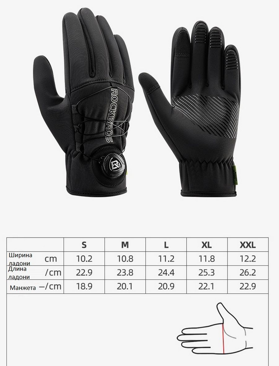 Зимние вело перчатки Rockbros Перчатка фиксируется с помощи утяжки по типу BOA На ладонь нанесен силиконовый слой для лучшего сцепления Работают с сенсорным телефоном