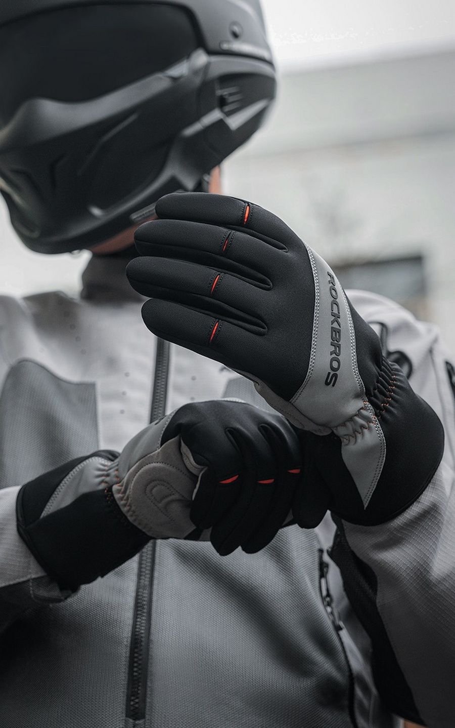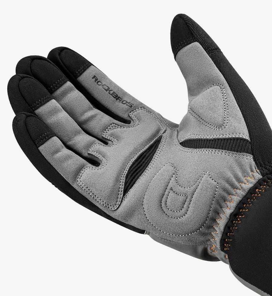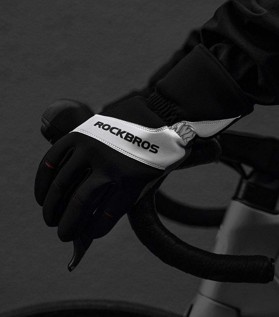 Зимние вело перчатки Rockbros Имеют свето отражающие элементы На ладонь нанесен силиконовый слой для лучшего сцепления Имеется "сопливчек" Работают с сенсорным телефоном