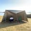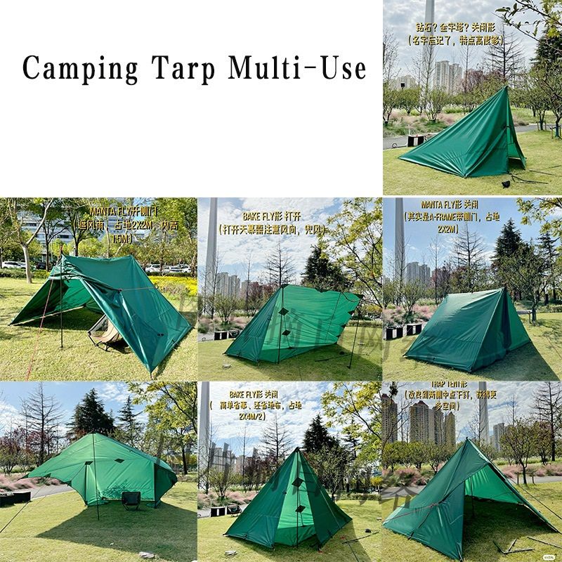 Туристический тент имеет множество петель по периметру и по середине, благодаря чему имеет множество конфигураций установки.