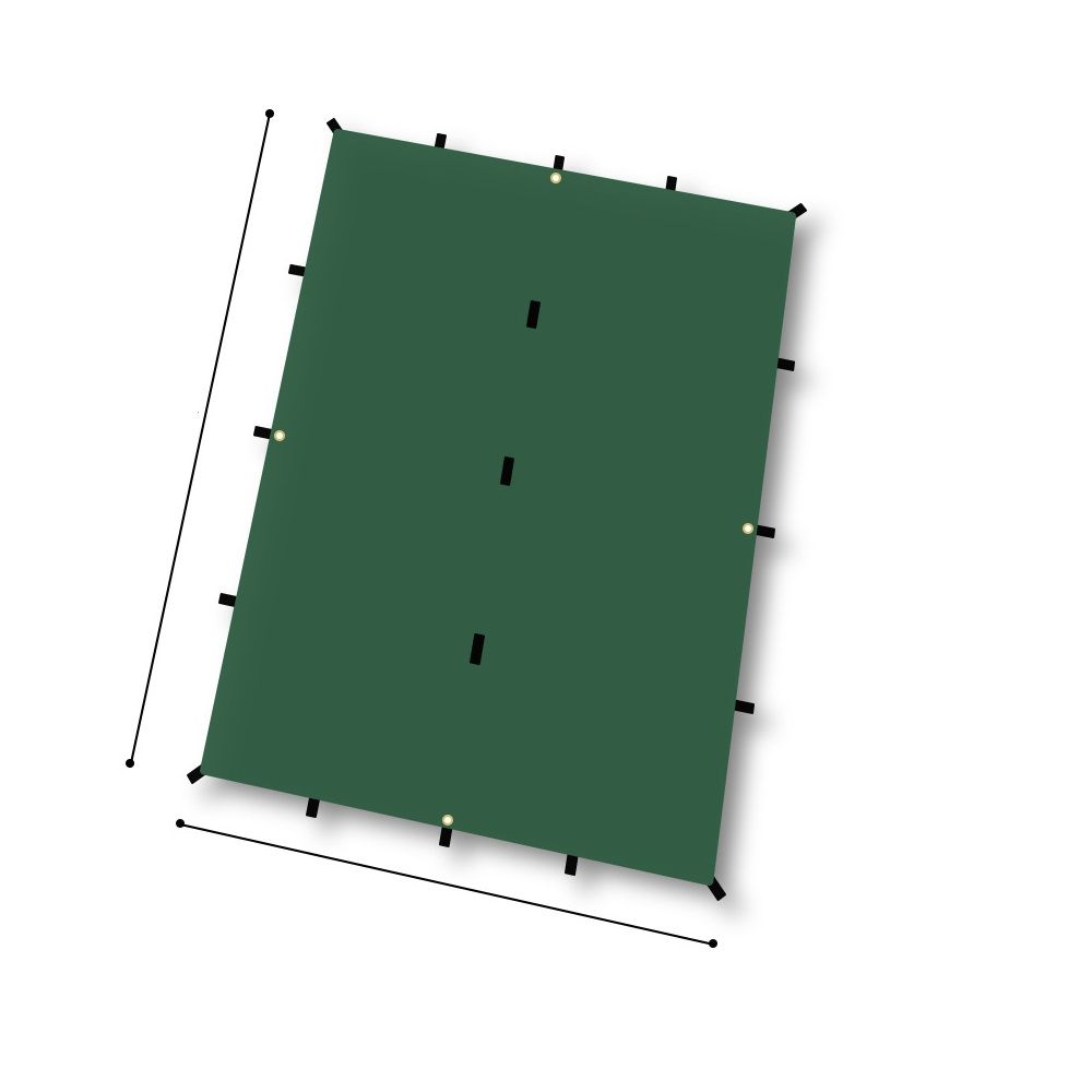 Туристический тент имеет множество петель по периметру и по середине, благодаря чему имеет множество конфигураций установки.