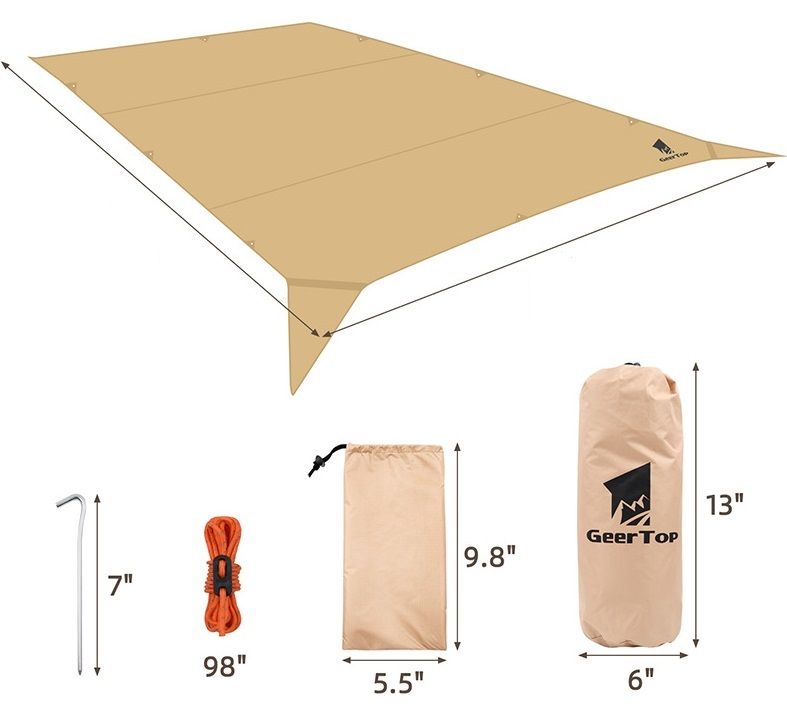 Тент отлично изготовлен, места установки люверсов усилены и хорошо прошиты. Обратная сторона посеребрена для защиты от солнца