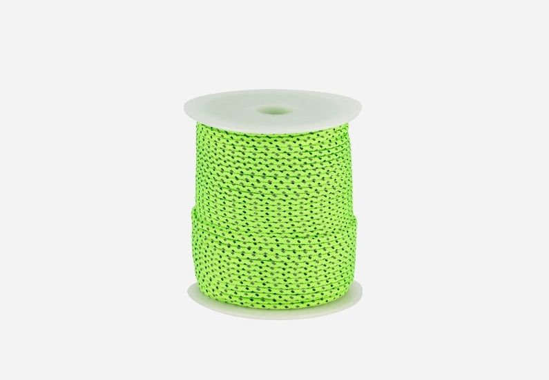 Моток 50 метров, диаметром 2.5 мм В веревку вплетена нить со светоотражающим элементом, делает веревку заметнее ночью.