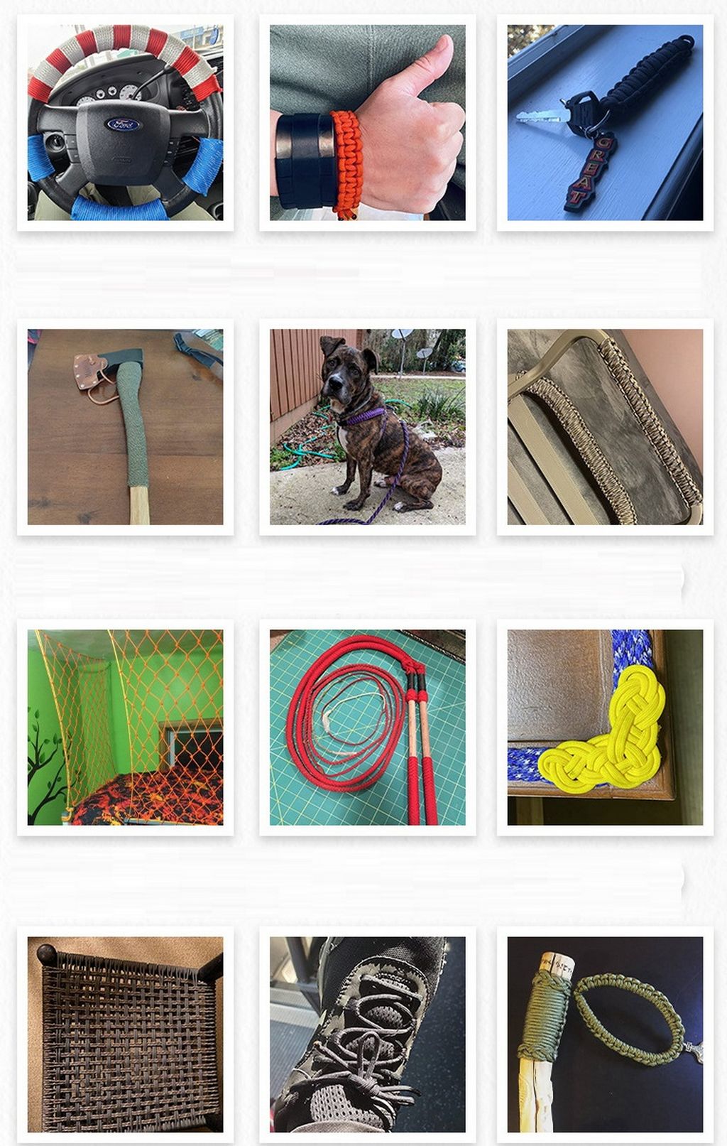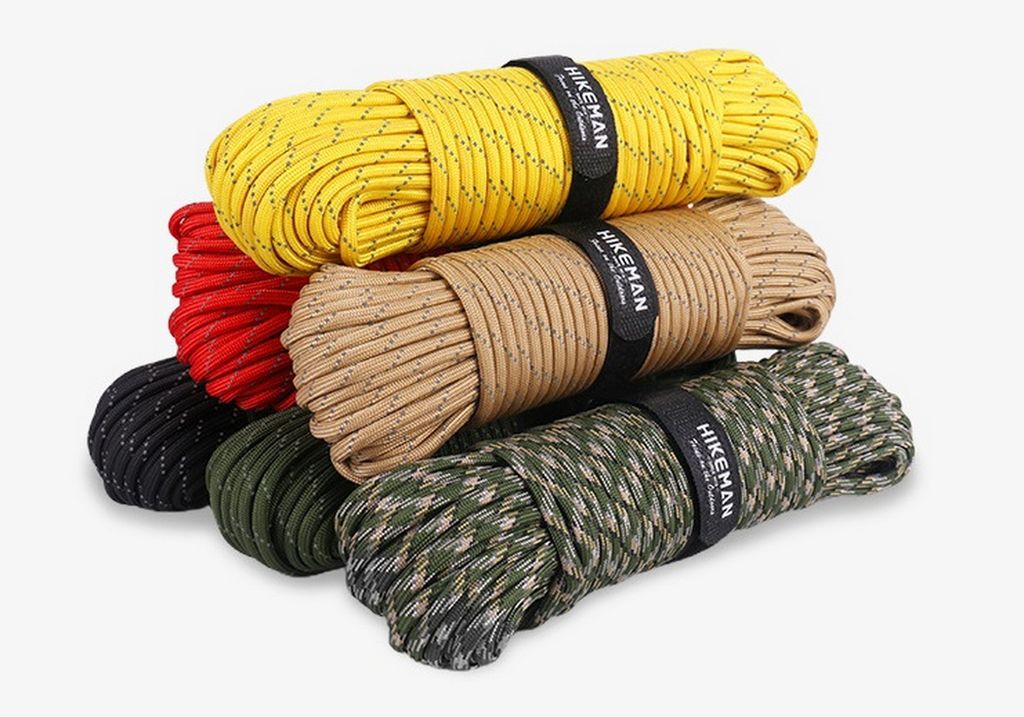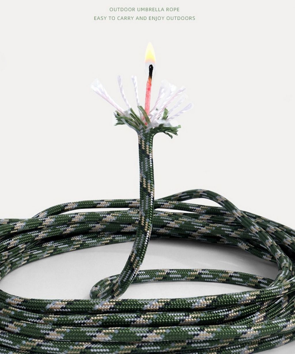 - В веревку вплетена нить со светоотражающим элементом, делает веревку заметнее ночью.