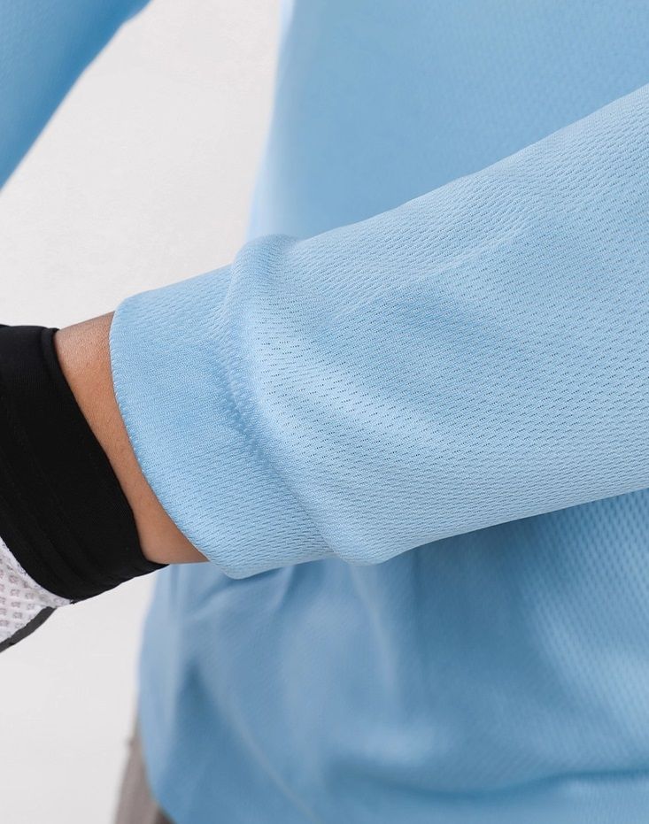 Внутренний слой изготовлен из ультратонкого полипропиленового волокна, которое обладает преимуществами гидрофобности и микроструктуры поверхности. Пот, быстро выводится на внешний слой > Наружный слой ускоряет впитывание и испарение пота через гидрофильный полиэфирный материал, образуя единую систему влагоотведния. Благодаря чему джерси кажется сухим.