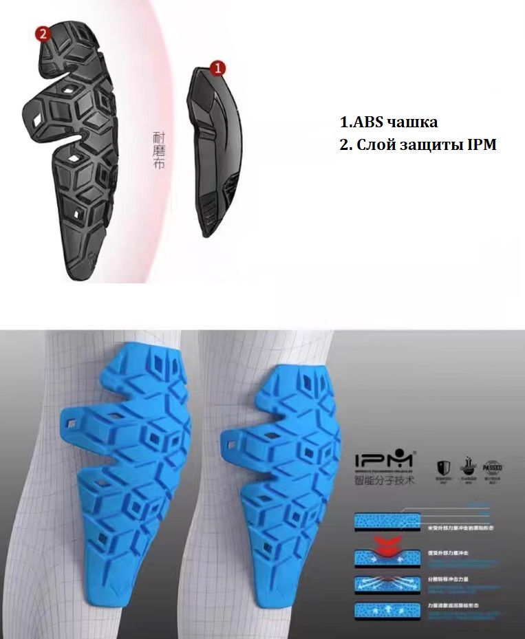 Мягкие и удобные наколенники с съёмной чашкой из и жесткой пластиковой накладкой для лучшей защиты. Наколенники изготовлены по типу носка, просто натягивается на ногу без дополнительных затяжек и держится за счет резинок с силиконовым покрытием. Задняя часть выполнена из легкого дышащего материала. Защитная чашка имеет состоит из двух частей, твердая чашка из ABS, второй слой IPM (аналог D3O).