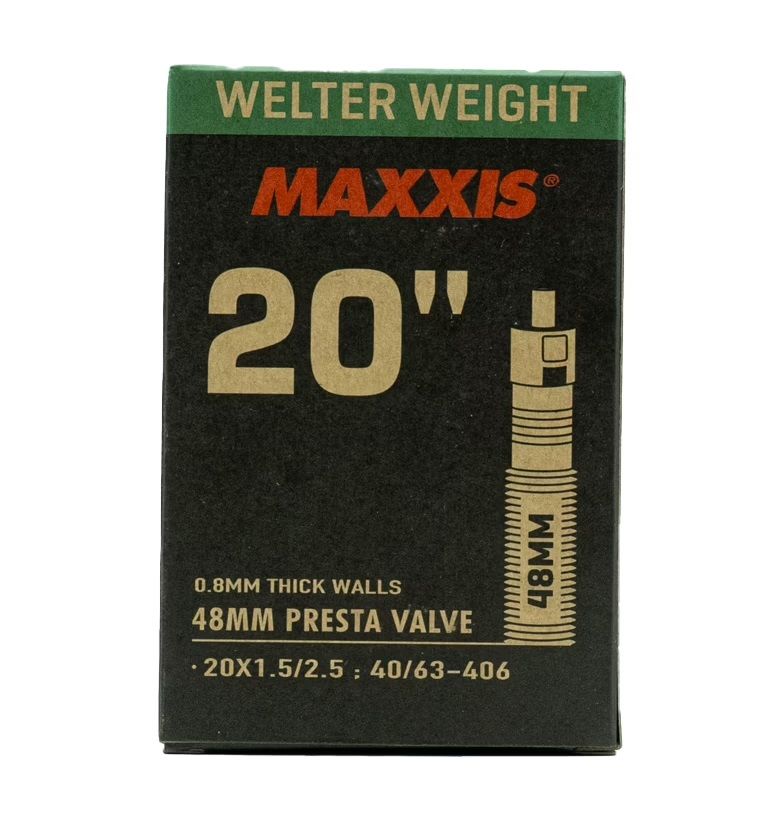 Универсальная камера Maxxis Welter Weight отличается малым весом и подойдет почти для любого типа катания. Толщина стенки камеры составляет 0.9мм, при этом она весьма устойчива к проколам. ОСОБЕННОСТИ: Толщина стенки – 0.9 мм Вес – 149 граммов Размер: 20*1.5/2.5 0.8