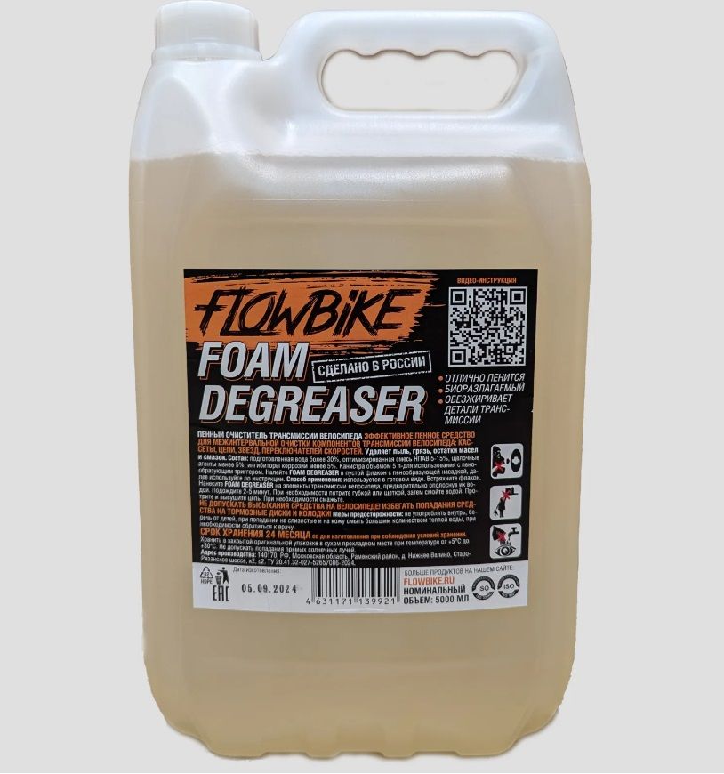 FLOW FoamDegreaser - пенный очиститель трансмиссии велосипеда. Эффективное пенное средство для межинтервальной очистки компонентов трансмиссии велосипеда: кассеты, звезд, цепи, переключателей скоростей. Удаляет пыль, грязь, остатки масел и смазок.