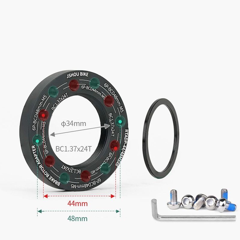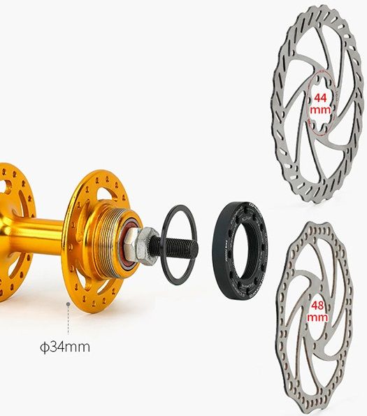 Адаптер позволяет установить ротор на втулку с резьбой, возможность установки роторов с отверстиями на 44 и 48 мм.