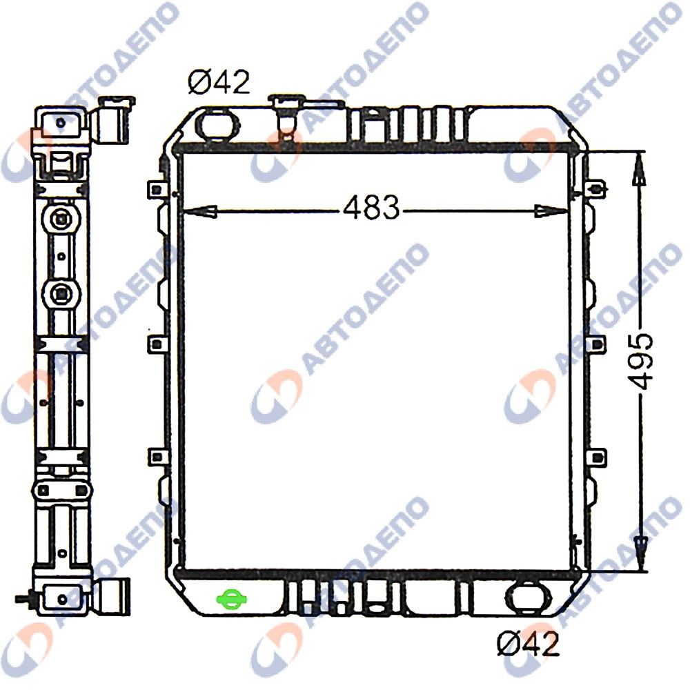 ширина-483, высота-495mm, диаметр патрубков: верх- Применяемость: (MAZDA TITAN / Двигатель , объём 0 / Кузов / )