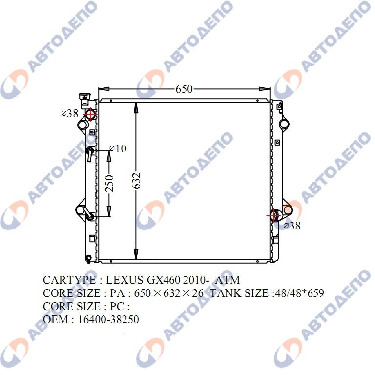 Радиатор охлаждения двигателя. LEXUS GX460 TO-0547-26-K