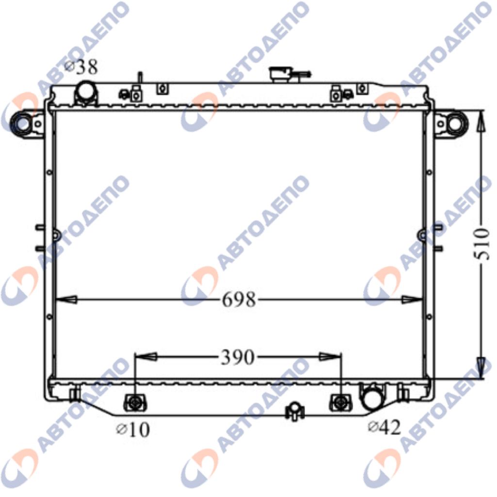 Радиатор охлаждения двигателя. NISSAN X-TRAIL, SERENA, LIBERTY, PRESAGE, BASSARA TC24, TNC24, TU30, TNU30, RM12, JTNU30, RNM12 NI-0051-16-AT-K-ПАТРУБОК28