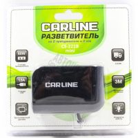 Разветвитель прикуривателя CARLINE CS-221B mini 2гнезда на 5A и 2USB на проводе,цвет черный csm221b