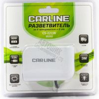 Разветвитель прикуривателя CARLINE CS-221W mini 2гнезда на 5A и 2USB на проводе,цвет белый csm221w