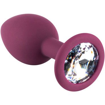 Анальная пробка из силикона с прозрачным кристаллом 5.8/2.8см, бордовая
