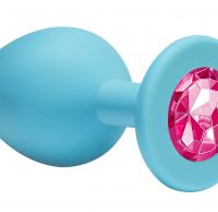 Анальная пробка Emotions Cutie голубая с розовым кристаллом. 7/ 2,8см