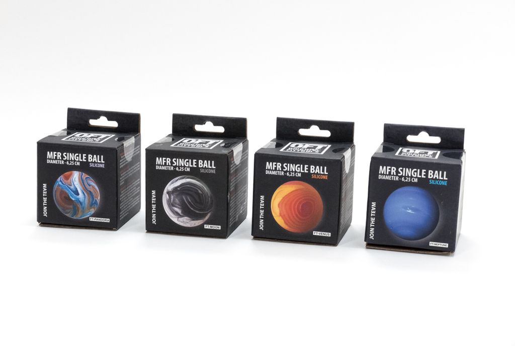 Массажный мяч OFT применяется для самостоятельного массажа (самомассажа) с целью снятия мышечных узлов, триггерных точек и спаек в фасциях — плотных соединительных тканях, окружающих мышцы. При нажатии мяч проникает глубоко в ткани, способствуя расслаблению напряжённых участков и улучшая кровообращение. Это помогает ускорить восстановление, облегчить боль и повысить общую подвижность.