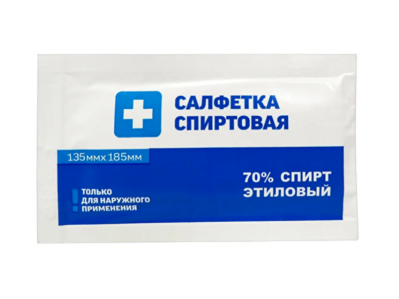 Спиртовая салфетка пропитана раствором 70% этилoвого cпиpта и обладает выраженным противомикробным, антибактериальным и антисептическим эффектом.