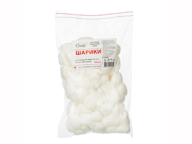 Шарики ватные №100 (70 г) медицинские не стерильные (для станций переливания крови), Россия (ООО "Емельянъ Савостинъ. Ватная Фабрика")