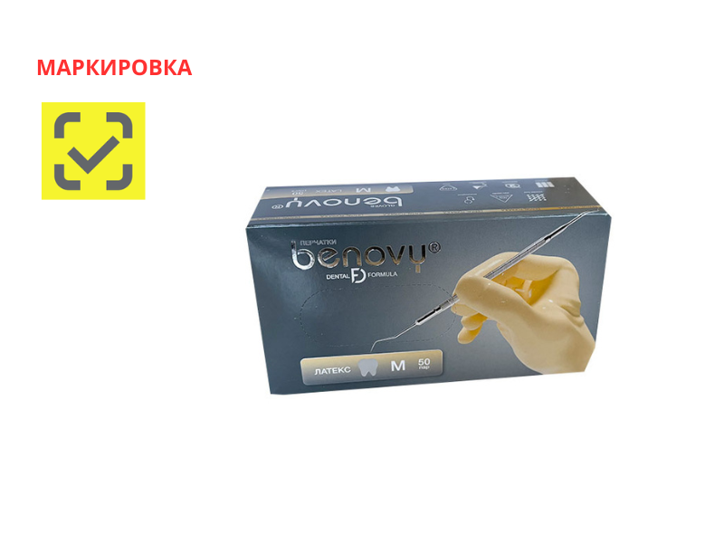 Перчатки медицинские диагностические (смотровые) одноразовые нестерильные "BENOVY" из натурального латекса текстурированные неопудренные с двукратной хлоринацией (манжета с валиком) (вид 122540)