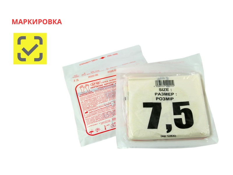 Перчатки SFM хирургические латексные стерильные (анатомической формы неопудренные (PF) текстурированные), размер №7,5(M), 50 пар/упаковка, Германия (SFM Hospital Products GmbH)