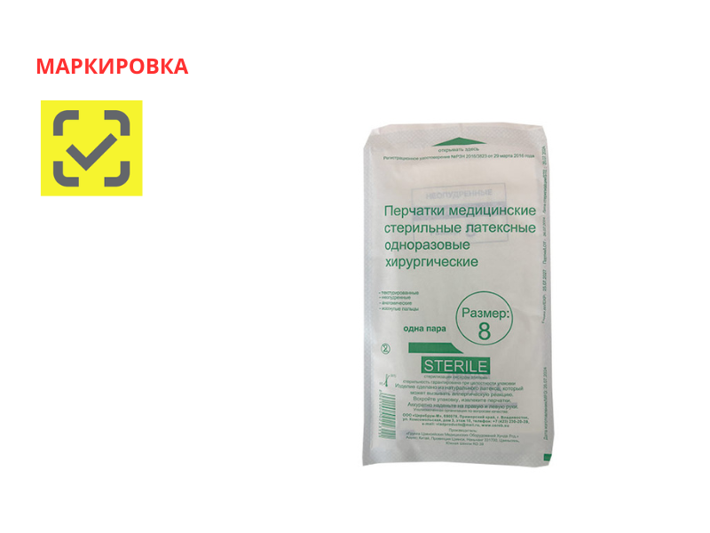 Перчатки медицинские стерильные латексные одноразовые хирургические неопудренные текстурированные, размер 8,0, 50 пар/упаковка, Китай ("Группа Цзянсийских Медицинских оборудований Хунда Лтд.")