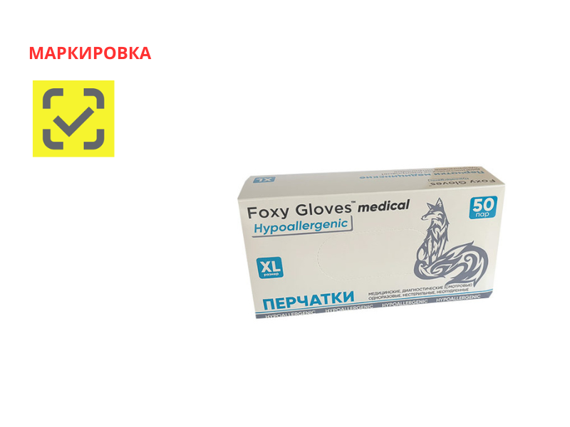 Перчатки Foxy-Gloves смотровые нитриловые, неопудренные, нестерильные, цвет голубой, размер XL, 50 пар/упаковка, Китай ("Жонхон Пулин Продактс Ко., Лтд.")