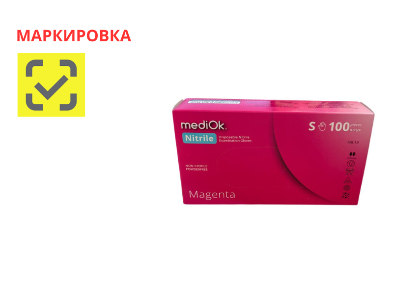 Перчатки MediOK смотровые нитриловые неопудренные текстурированные нестерильные, цвет розовый (Magenta), размер S, 50 пар/упак., Германия ("АМПри Хендельсгезельшафт мбХ")